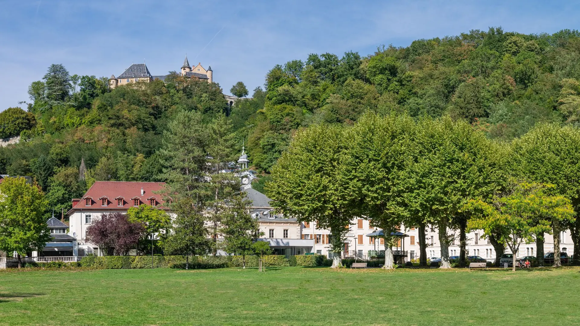 Élément central de la station thermale autour de laquelle se sont bâtis villas, hôtels et chalets, le parc, aménagé sous Napoléon III (1852-1870), constitue l'occasion d'une flânerie agréable entre arbres variés, le carrousel.